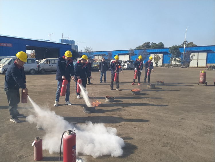各部门员工使用灭火器灭火,员工们详细了解并实操了灭火器使用方法,公司员工基本上都能正确使用灭火器。